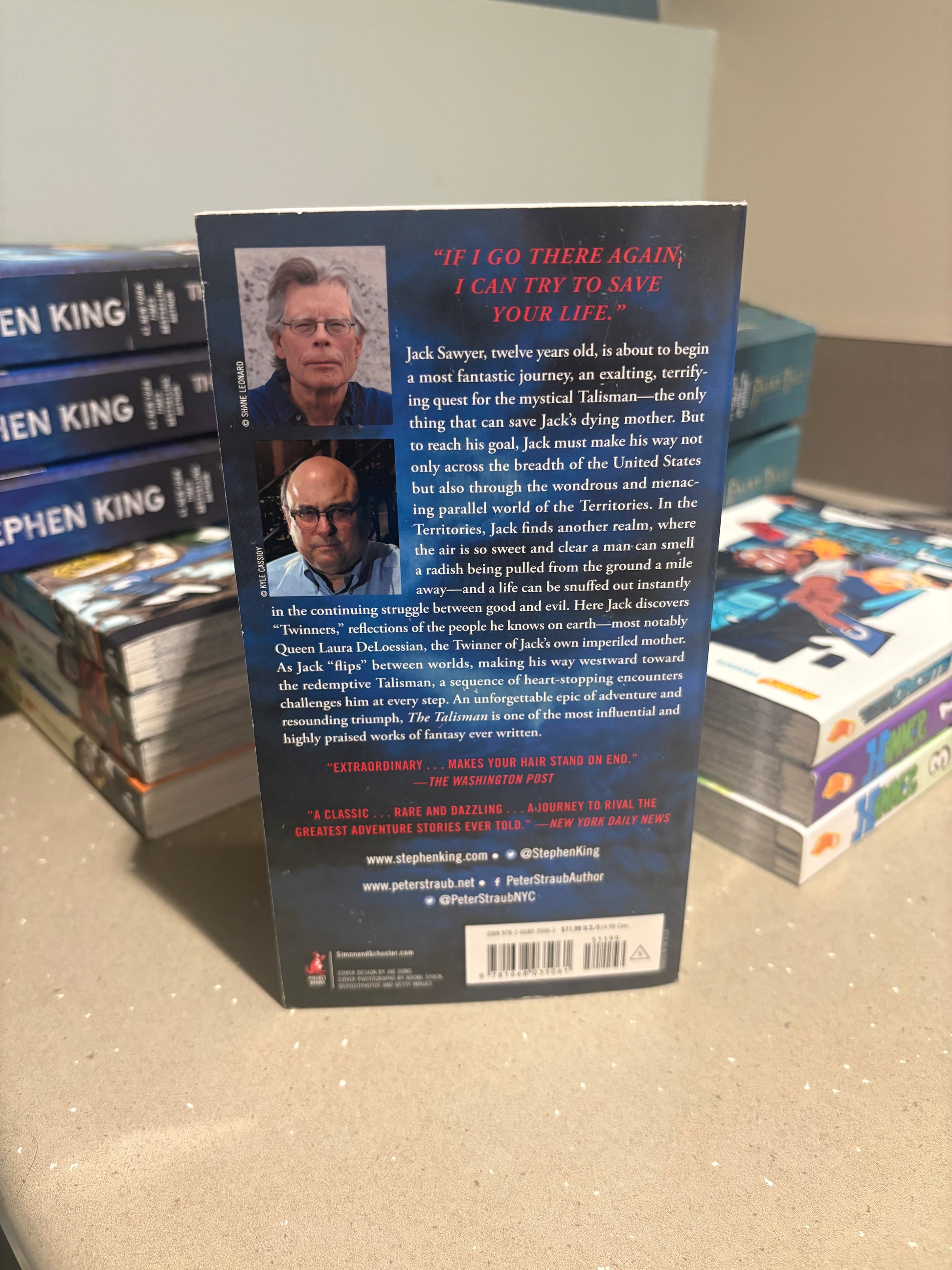 Jack Sawyer, twelve years old, is about to begin a most fantastic journey, an exalting, terrifying quest for the mystical Talisman—the only thing that can save Jack’s dying mother. But to reach his goal, Jack must make his way not only across the breadth of the United States but also through the wondrous and menacing parallel world of the Territories.